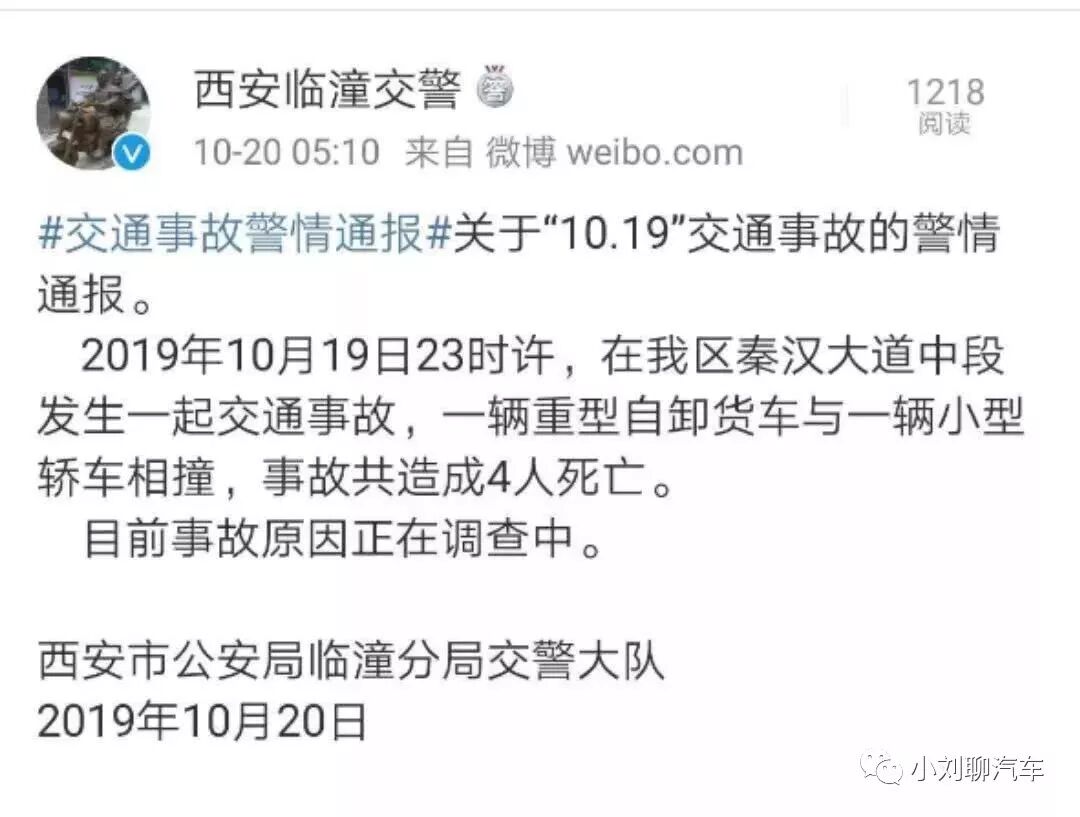 10月20日凌晨5:10,西安临潼交警微博发布警情通报,公布了事故的死亡情况,称目前事故原因正在调查中。