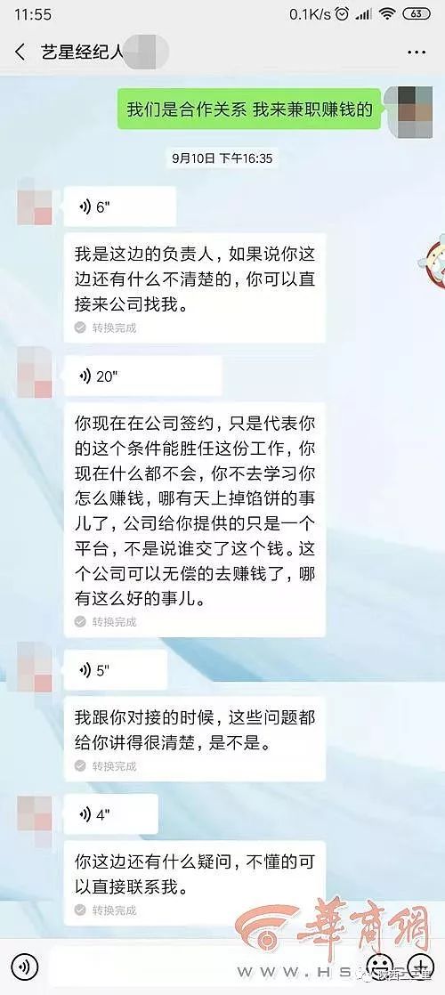 小刘说,经纪人说签的是合作关系合同,不是劳务关系,但她并不清楚两者有何区别,于是用支付宝花呗和京东白条交了3888元的服务管理费。