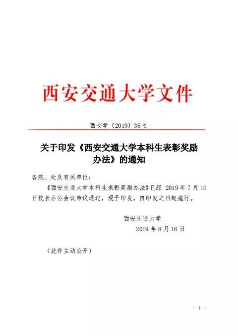 彭·通知 | 关于印发《西安交通大学本科生表彰奖励办法》的通知
