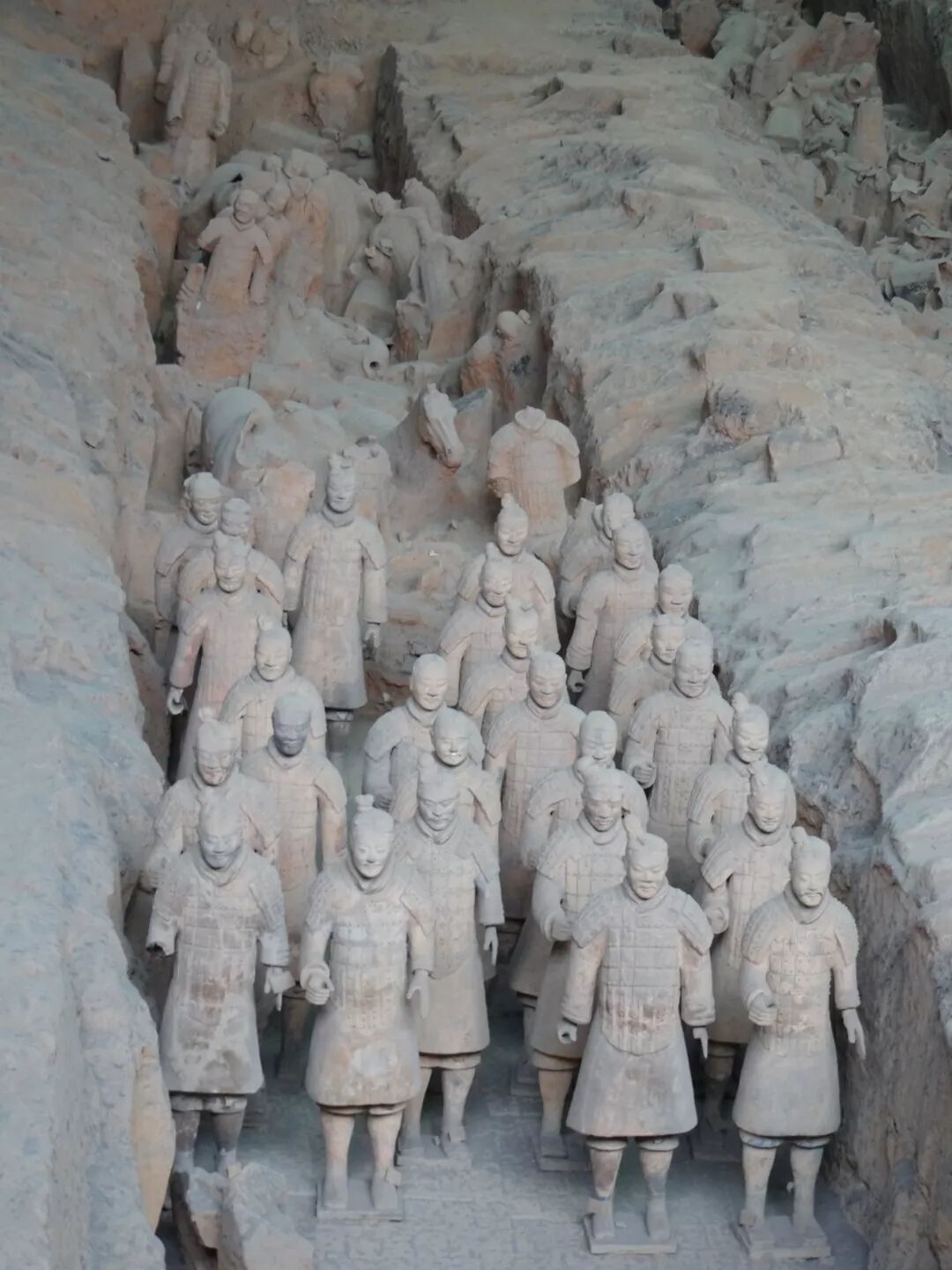 据介绍,兵马俑的佣身和头部是分开烧制的,后再拼合在一起
