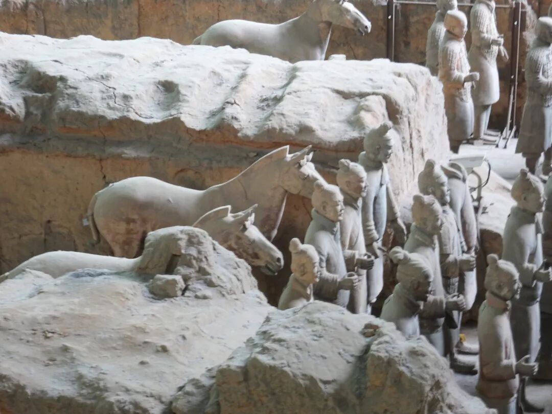 刚出土的兵马俑是彩色的,但是在出土后三分钟,兵马俑表面的彩漆就脱落了,现在我们看到的是陶的本色