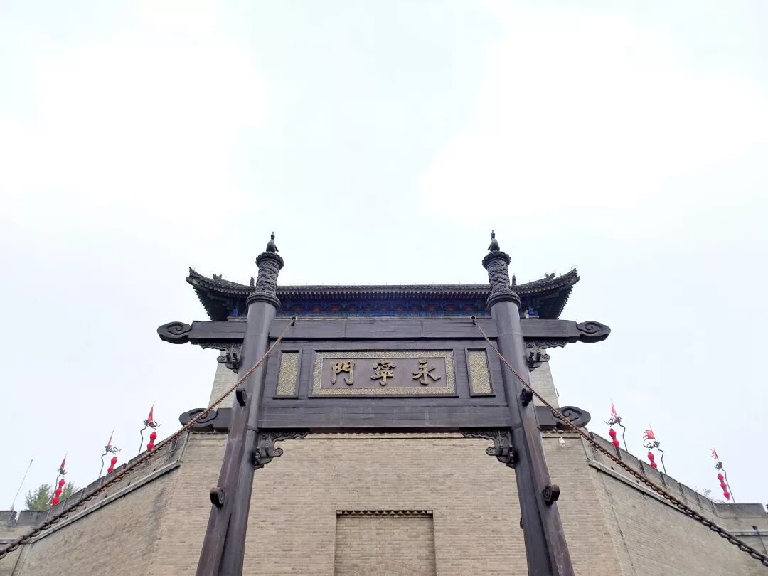 城墙的入口叫永宁门,门外有一条护城河,城墙有13.74km,走着游览大约需要三小时,也可以骑自行车,其中,单人单车为?45/辆,双人单车为?90/辆
