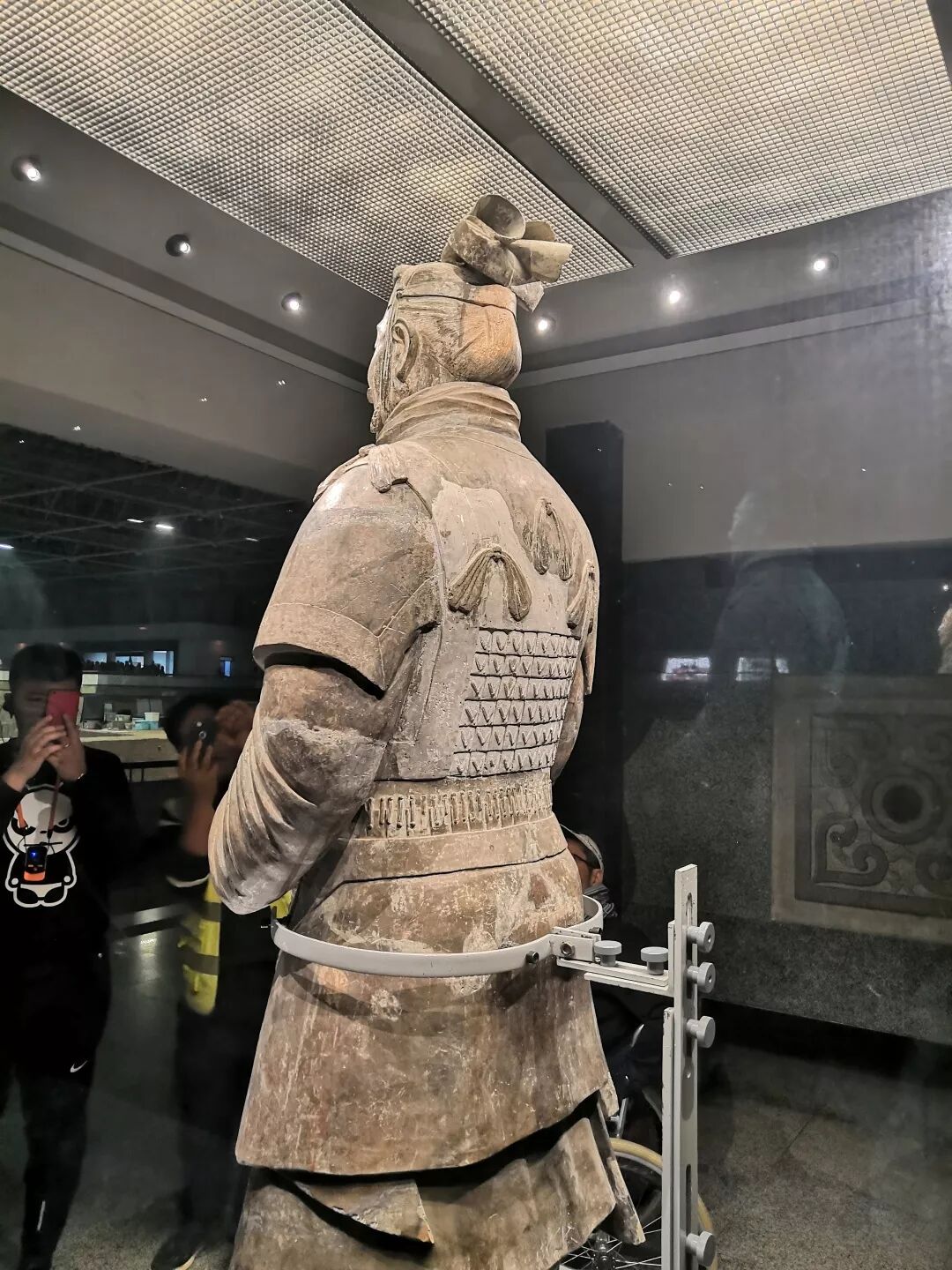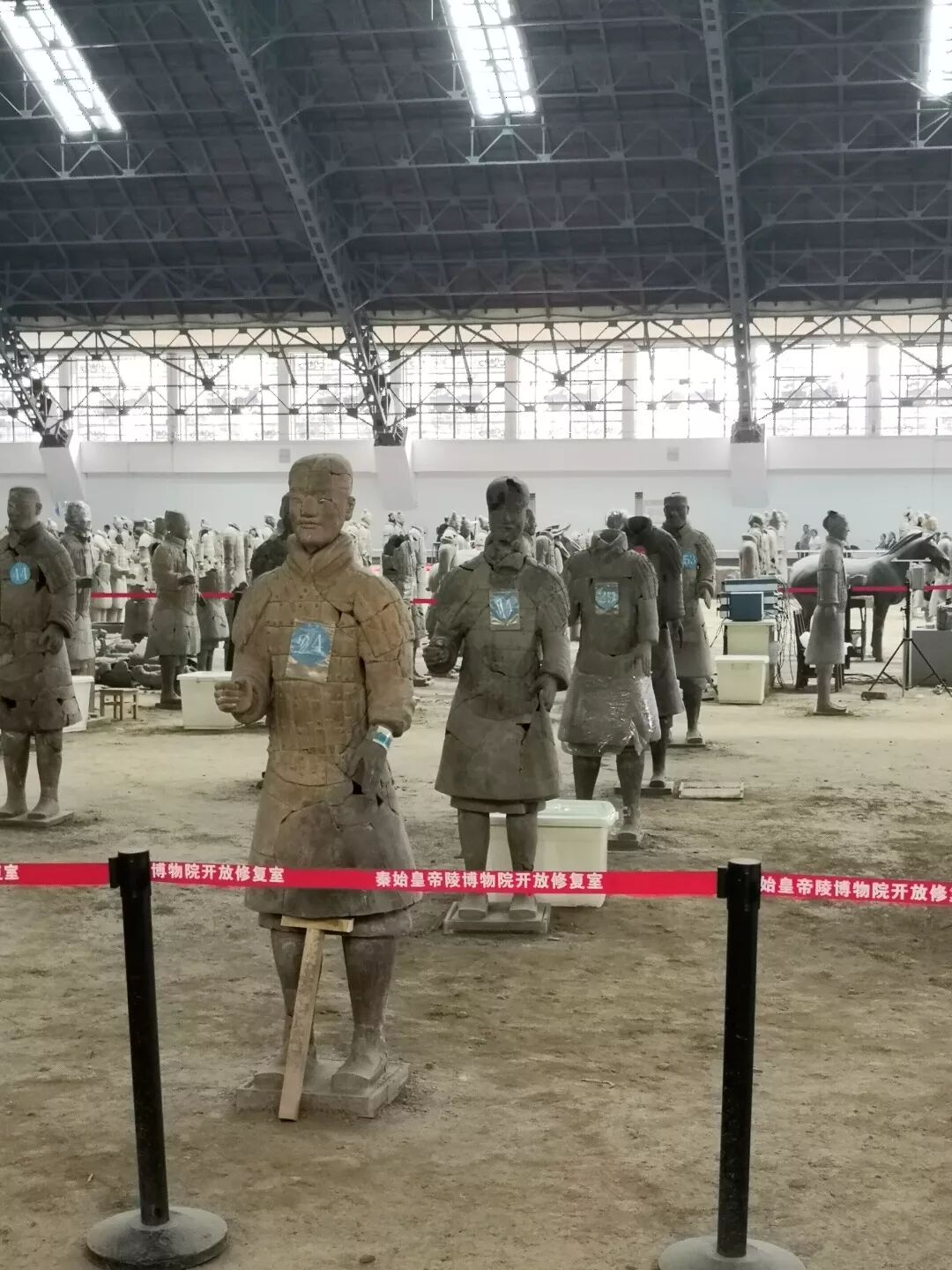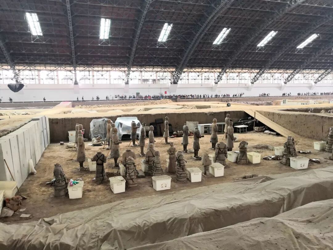 有些兵马俑在出土的时候已经破碎了,所以专家们会对兵马俑进行修复,会将套片一片一片粘起来后用绑带或者是木架进行固定