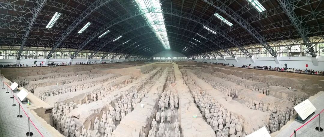 兵马俑一共有三个坑:一号坑,二号坑,三号坑,其中三号坑最大,二号坑次之,一号坑最小,据说,一号坑是统帅二号和三号坑的地方,而本篇开头的图片为三号坑,园区还有一个秦始皇帝陵博物馆