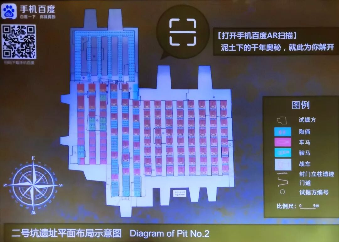 接下来是二号坑,二号坑是还没完全开挖的,但是已经探测到低下分别是什么文物