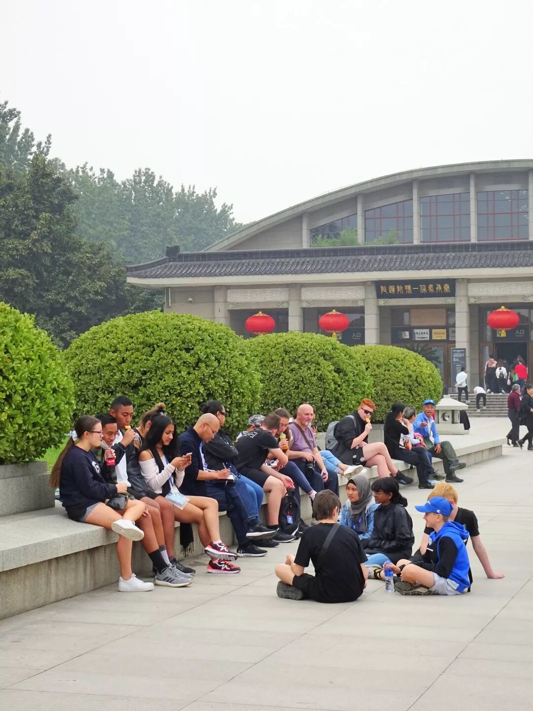 坐在门外的外国友人,挺多外国人来到兵马俑这里游览的
