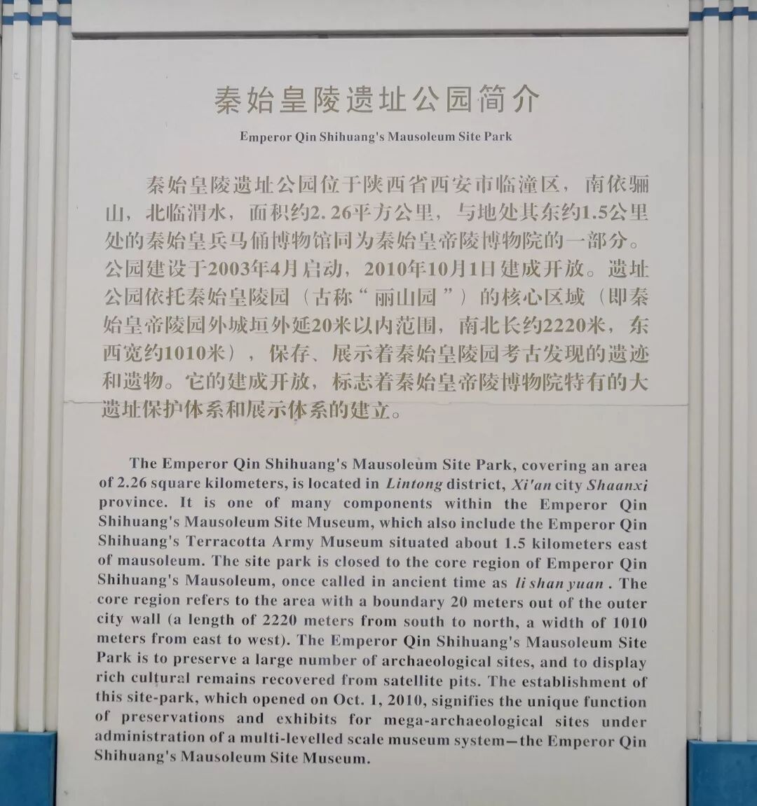 在游览完兵马俑之后,就是到秦始皇帝陵了,从兵马俑出来后会经过一个类似公交站的地方,在那里有免费专门接送来回兵马俑和秦始皇帝陵的游客,从兵马俑到秦始皇帝陵大约有1.5km,坐车大约需要5分钟