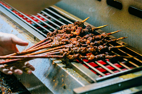 “把把烧”将每一块食材都精细分割以纤细的竹签将其串起每把小串在火舌的炙烤下散发出浓烈的香味