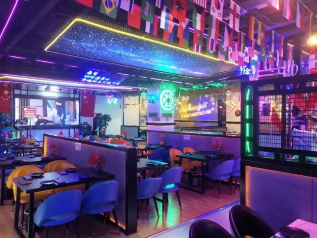 一进门店就被这梦幻的灯光吸引头顶耀眼闪烁的 星空长廊 一个百变主题时尚的餐厅十二个月十二个主题服务员 服装 和店里 装修 会围绕 主题变换 !让你体验不一样的美食之旅