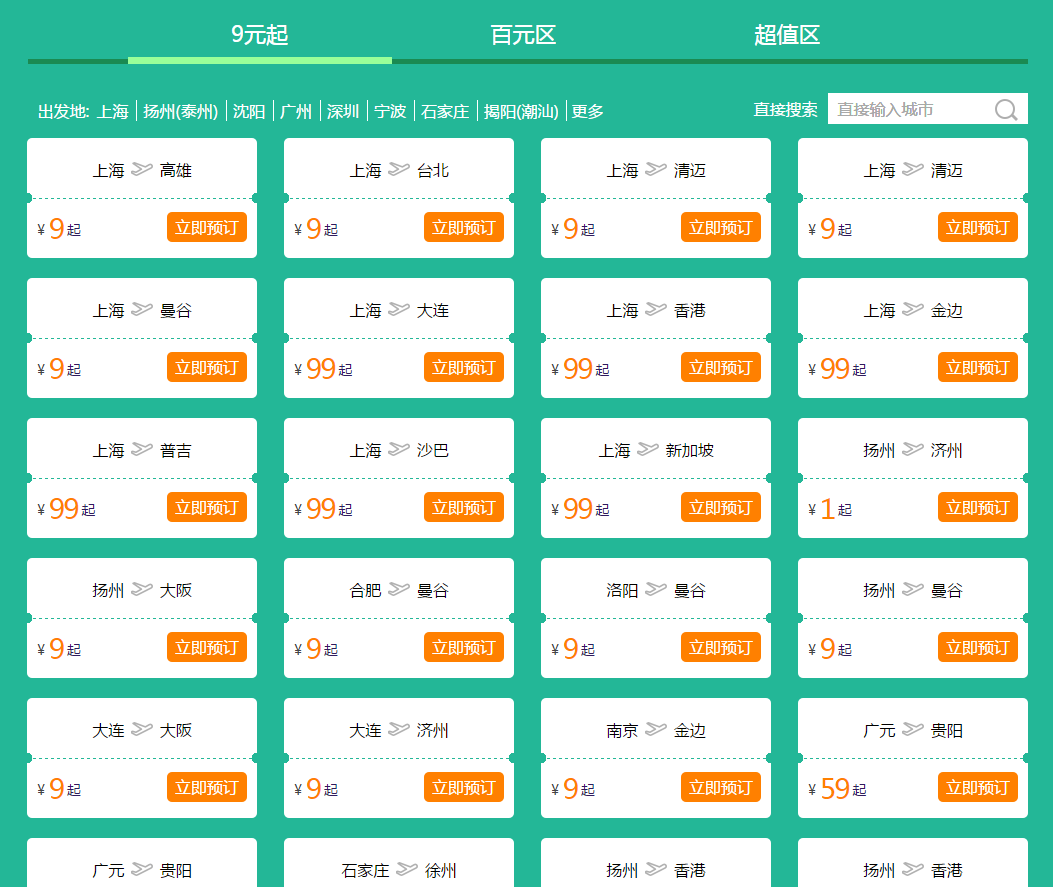 还是原来的套路,机票9元起,一些国内线和日本线可以看一看