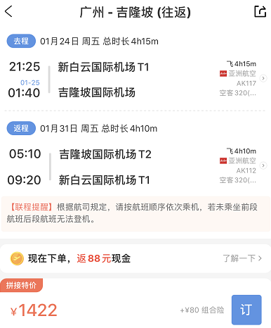 亚航突放春节票的消息,广州,深圳,长沙,昆明等出发,仍有好价!多城1K4起往返东南亚!