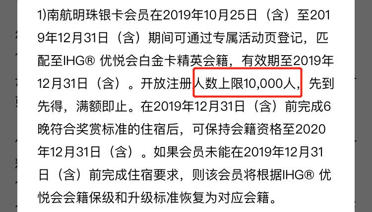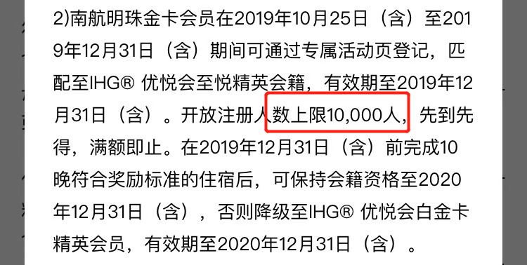 匹配的名额也有所调整,这次不管是南航明珠银卡匹配IHG白金会籍还是南航明珠金卡匹配IHG至悦会籍,注册上限人数都是10000人。