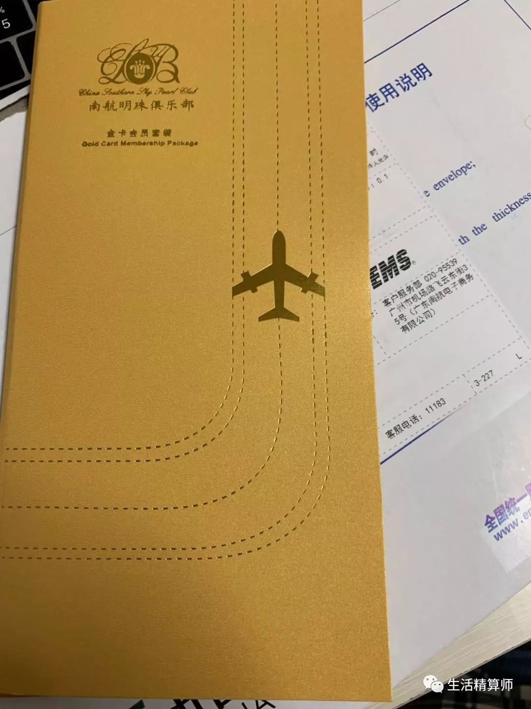 迫不及待的拆开看看里面有些啥,南航明珠俱乐部金卡会员套装:包含了一张南航明珠俱乐部会员卡,一张南航明珠俱乐部行李牌,一根皮质卡带和一张金卡会员指南。