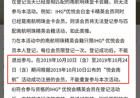 和上次相比,双方都加强了风控手段。洲际这边首先会有房晚资格的限制,相当于导出表格的时候多一个字段筛选。而南航这边也增加了至多8个工作日的审核时间及机制,是为了审核会员级别的有效性,也是为了更好保护会员的权益和确保活动可以继续进行。