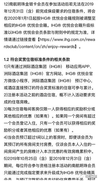 · IHG? 优悦会符合参与资格的金卡、白金卡和至悦精英会员在2019年10月25日至2019年12月31日期间通过专属活动页登记并完成审核,可匹配相应的南航明珠会籍,有效期至2020年2月29日(含)。若在2019年10月10日(含)至2019年12月31日(含)期间完成6个升级航段,且达到升级里程6,600公里,可保级至2021年2月28日(含),否则自2020年3月1日起按照南航明珠俱乐部升级、保级标准调整至相应会籍。