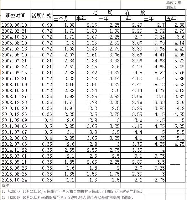 其中,从2014年11月22日起,央行不再公布金融机构人民币五年期定期存款基准利率。