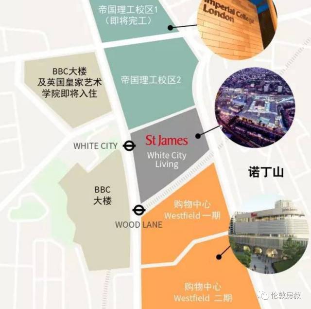 这里距欧洲最大的购物中心Westfield,及帝国理工大学25英亩新校区,乘坐公交车只需12分钟,BBC电视广播大楼也坐落于此,这里将吸引最好的商业人才和学术精英; 知名购物中心Westfiled将进行扩建, 多开设360家商店、60个饮食空间,以及一个配备17块大荧幕和最先进技术的电影院, 作为White City改造的一部分,其大小将超过原来的两倍。政府重量级White City 将转型成为世界领先的研究、创新和教育中心, 同时也将成为时装、零售、媒体和娱乐中心, 未来将新增10000个新工作岗位。