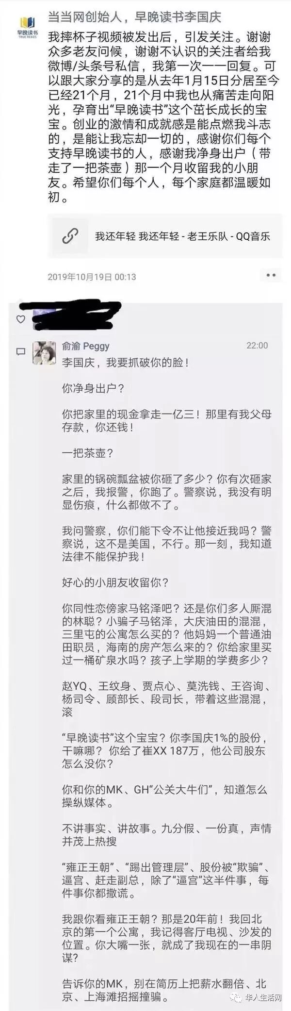 这事过了后,此前一直沉默的俞渝回复一篇长文回击李国庆。