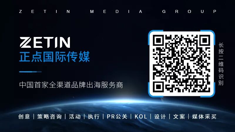 正点国际传媒(ZETIN)是中国第一家专注品牌海外传播的传媒机构,专业服务于中国品牌实现国际化品效合一的互动广告营销服务商;在正点国际传媒微信公众平台将会定期推出海外推广的干货信息,为各位出海的伙伴们提供更多有价值的信供参考。出海必看,品推必读!