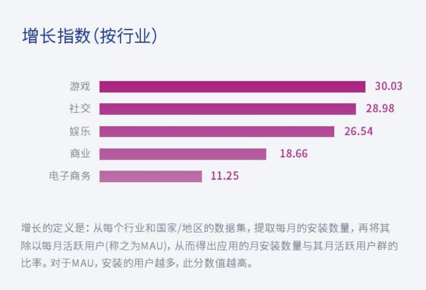 日本用户使用移动应用的意愿很高,高留存率表明用户对各类应用保有很高的忠诚度,有三分之一的人会有安装后的第一天使用应用,且在第七天时留存率才下降到20%以下,从第14天到第30天用户留存率趋于平缓,第30天则趋于稳定。