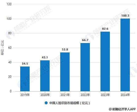 除了支付宝、微信刷脸大战噱头,庞大的刷脸市场,也是空壳公司实施加盟费骗局的重要话术。据前瞻产业研究院发布的《中国人脸识别行业市场前瞻与投资战略规划分析报告》统计数据,2013年中国人脸识别市场规模仅仅达8.61亿元,2018年约为27.6亿元,较2013年增长逾300%,处在快速发展阶段,预计未来五年人脸识别市场规模将保持20%以上的增长速度,到2024年市场规模达到100亿元左右。