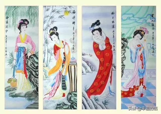 29、四大美人图:西施浣沙、昭君出塞、貂婵拜月、贵妃醉酒