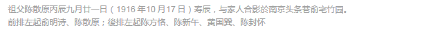 陈宝箴、陈三畏、陈三立、陈师曾、陈隆恪、陈寅恪、陈方恪、陈登恪、陈覃恪、陈康晦、陈新午、陈安醴、陈静娴、陈绮庄、陈小从、陈流求、陈小彭、陈美延、陈封可、陈封怀、陈云君、陈封雄、陈封猷、陈星照、陈贻竹……
