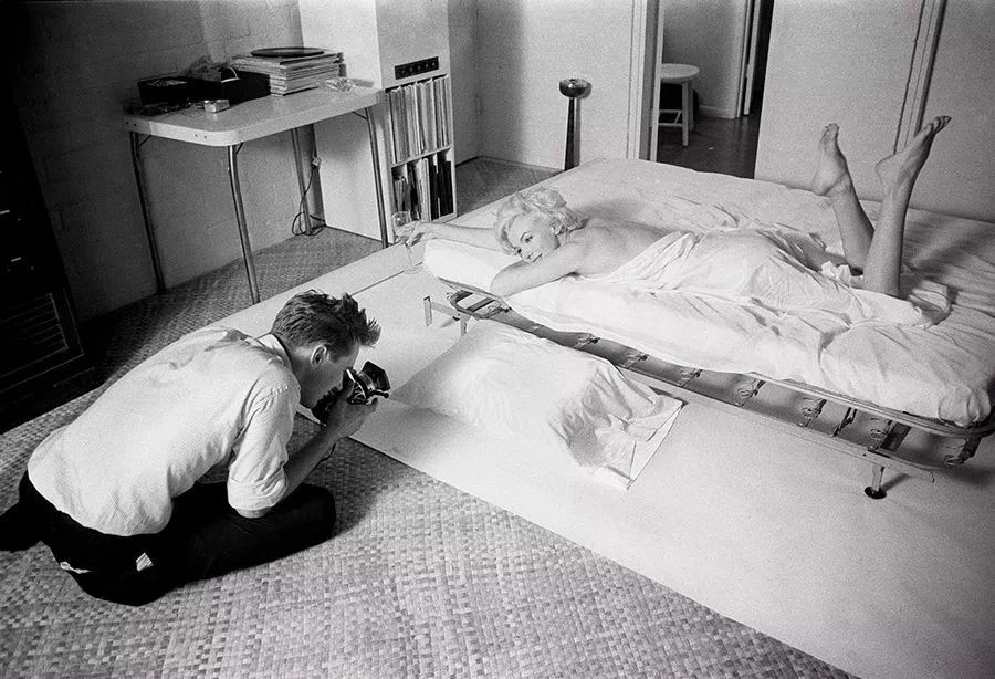 梦露对着镜头不断变换姿势。摄影师回忆说,“房间中只有我、相机和梦露。”