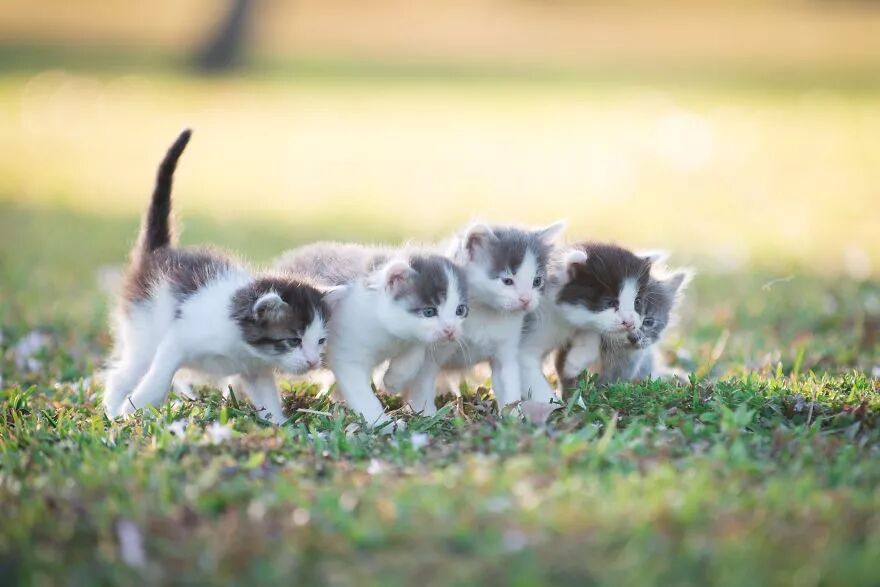 网友买了新相机,然后迫不及待的拍了一组小奶猫,试下新镜头…▼五只小奶猫排排站…