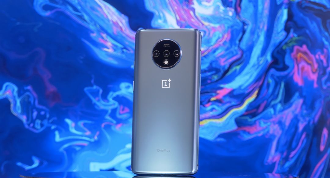 我们再来看看一加 7T 手机本身。7T 作为一加 7 的例行升级款,大的创新并不多,但是升级可并不少。外观方面,正面依然是延续了上一代一加7的水滴屏设计,背面的玻璃采用了磨砂处理,但是相比之前一加 7 Pro,镜面感还是更强了一些,所以表面还是会容易留下指纹。背部最大的改动在于摄像头部分,采用了一个神似“奥利奥”的造型,三摄组合,横向排列。至于好不好看呢,还是交给大家自己去评判吧。