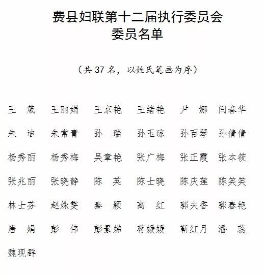 费县妇联第十二届执行委员会