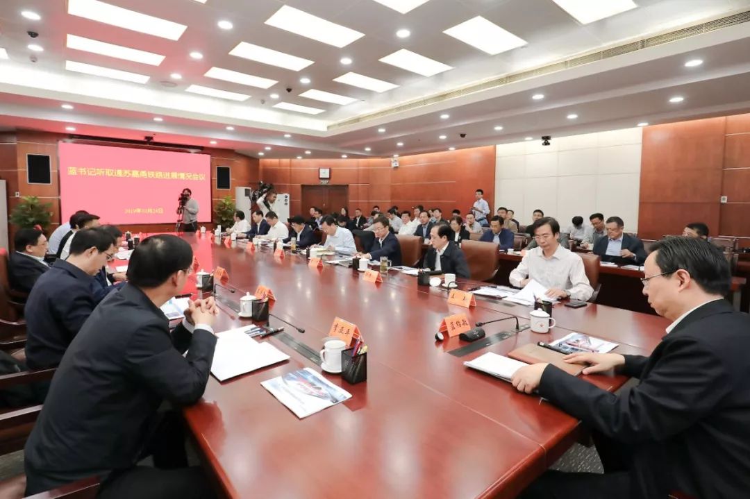 2019年10月24日,为切实加快通苏嘉甬铁路建设,及早构建 “丰“字形铁路网主骨架,省委常委、苏州市委书记蓝绍敏听取通苏嘉甬铁路进展情况汇报。