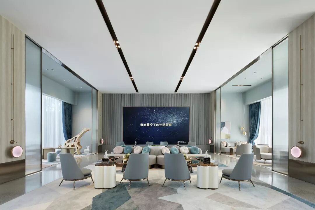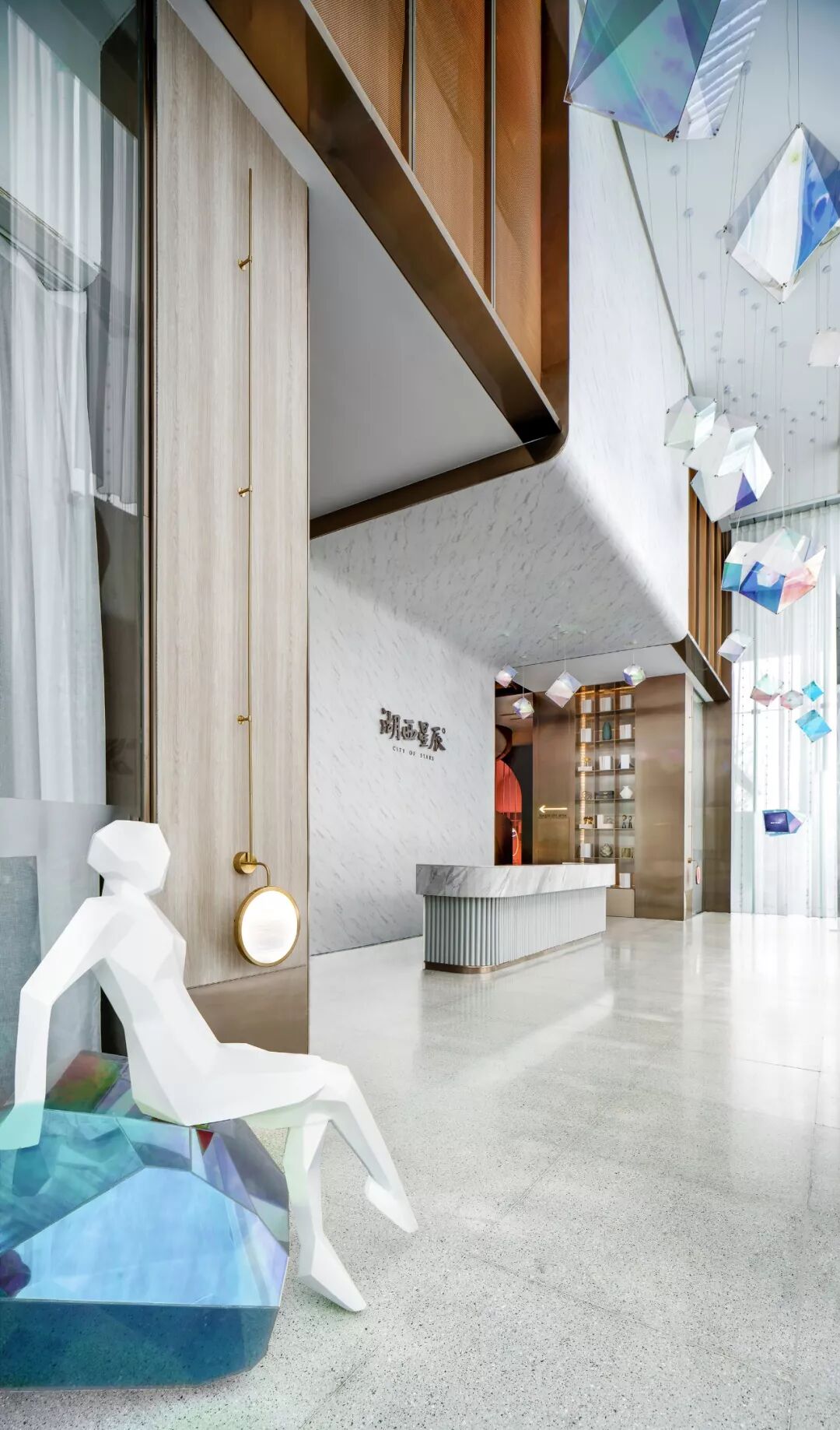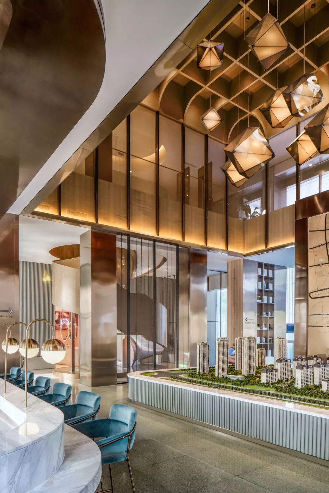 项目名称 | 苏州龙湖.首开湖西星辰项目地点 | 苏州市吴中开发区通达路业主单位 | 龙湖首开联合打造室内设计 | 筑详设计机构(上海筑详建筑装饰设计有限公司)软装单位 | 筑详设计机构(郑州筑详建筑装饰设计有限公司)设计面积 | 880㎡甲方管理团队 | 张凌云、张晓英、安猛景观设计单位 | 上海澜道佑澜环境设计有限公司建筑设计单位 | 上海睿风建筑设计咨询有限公司项目摄影 | 如初摄影工作室、孙骏项目灯光 | 鑫一照明主要材料 | 灰/白色水磨石雅士白大理石、炫彩亚克力板、热熔玻璃、金属网格帘、染色木饰面板、金色金属板、米灰色皮革