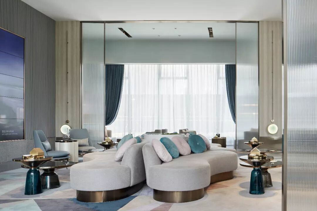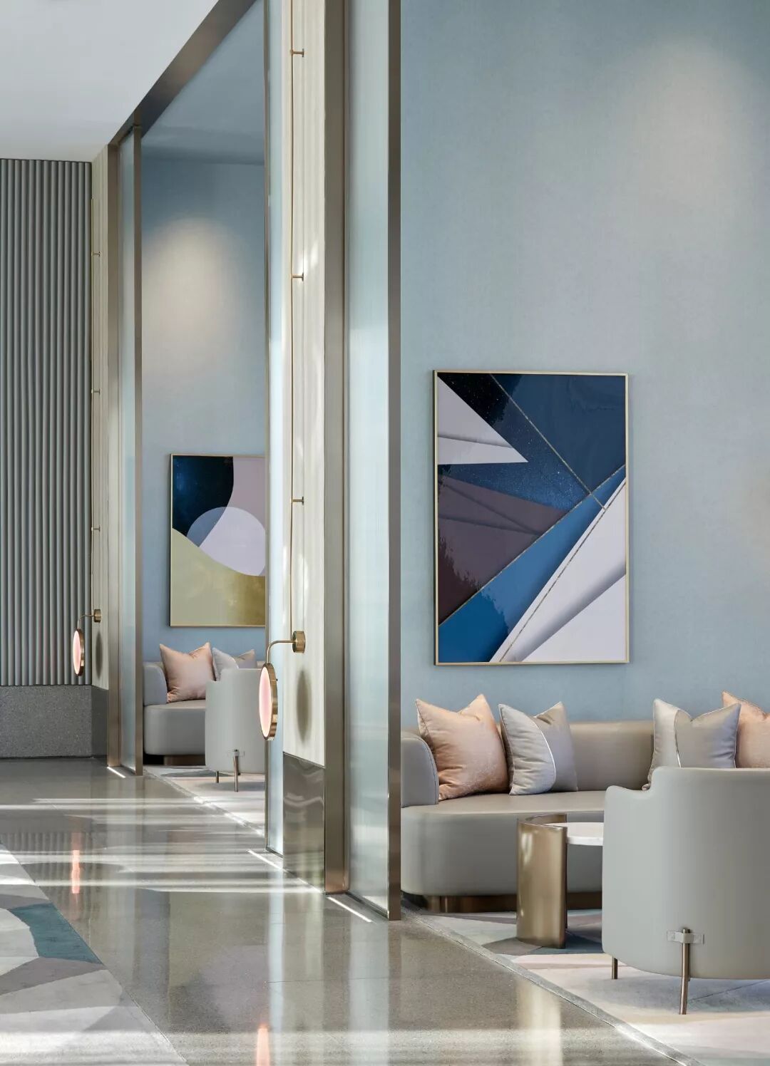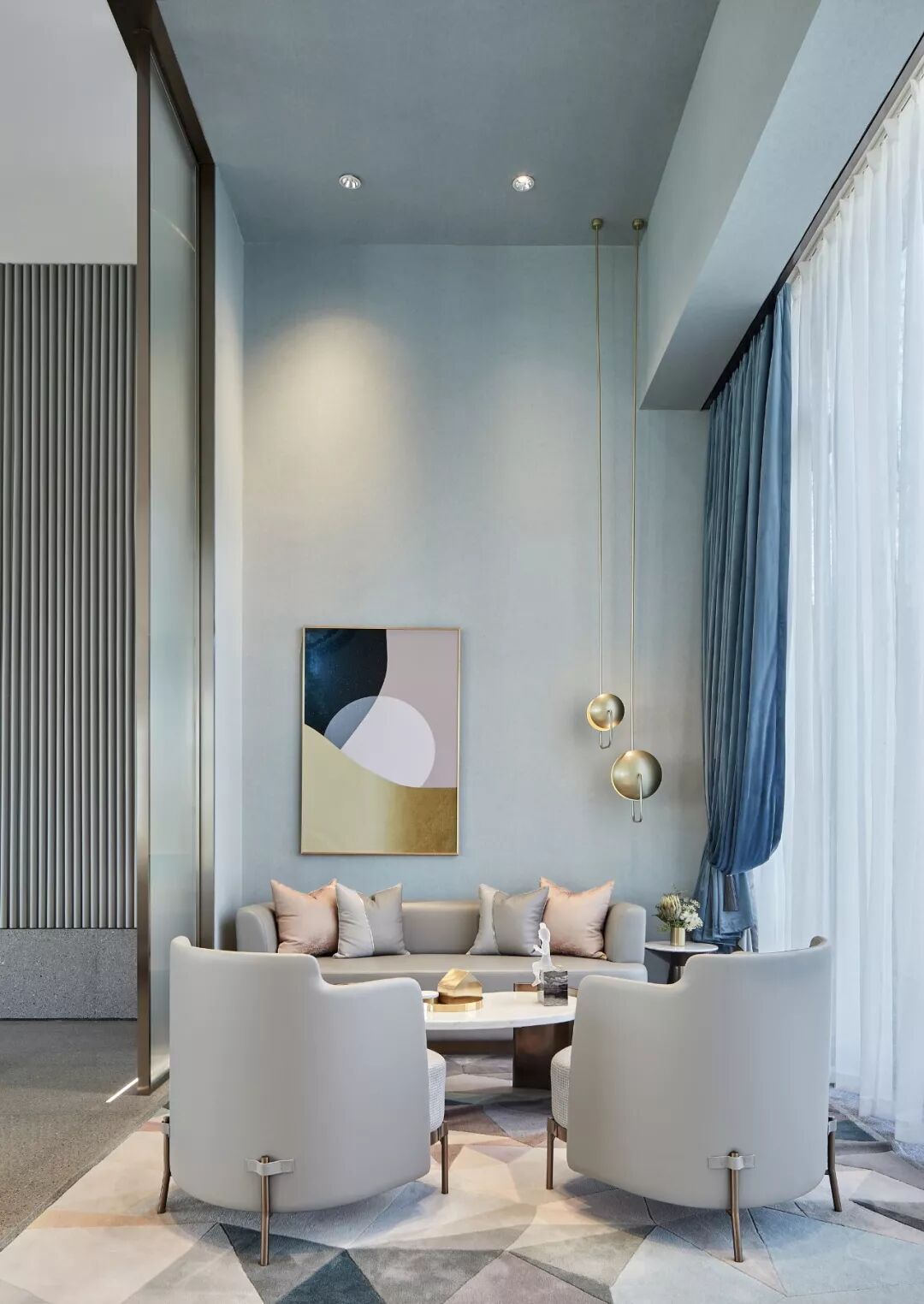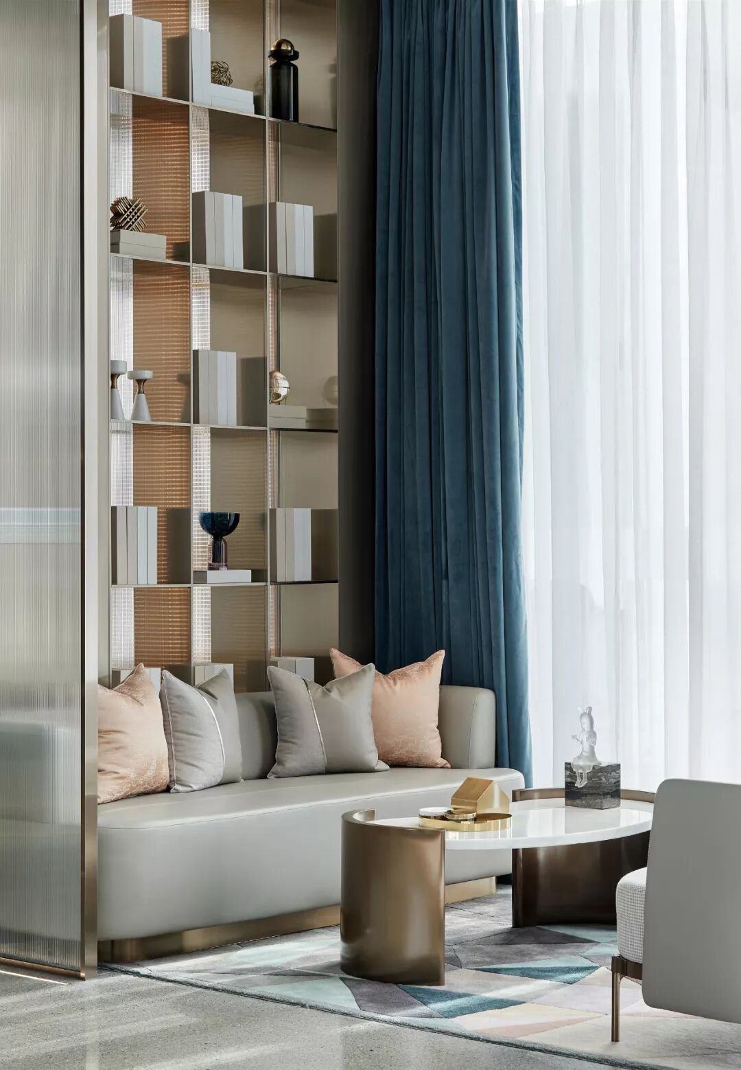 项目名称 | 苏州龙湖.首开湖西星辰项目地点 | 苏州市吴中开发区通达路业主单位 | 龙湖首开联合打造室内设计 | 筑详设计机构(上海筑详建筑装饰设计有限公司)软装单位 | 筑详设计机构(郑州筑详建筑装饰设计有限公司)设计面积 | 880㎡甲方管理团队 | 张凌云、张晓英、安猛景观设计单位 | 上海澜道佑澜环境设计有限公司建筑设计单位 | 上海睿风建筑设计咨询有限公司项目摄影 | 如初摄影工作室、孙骏项目灯光 | 鑫一照明主要材料 | 灰/白色水磨石雅士白大理石、炫彩亚克力板、热熔玻璃、金属网格帘、染色木饰面板、金色金属板、米灰色皮革