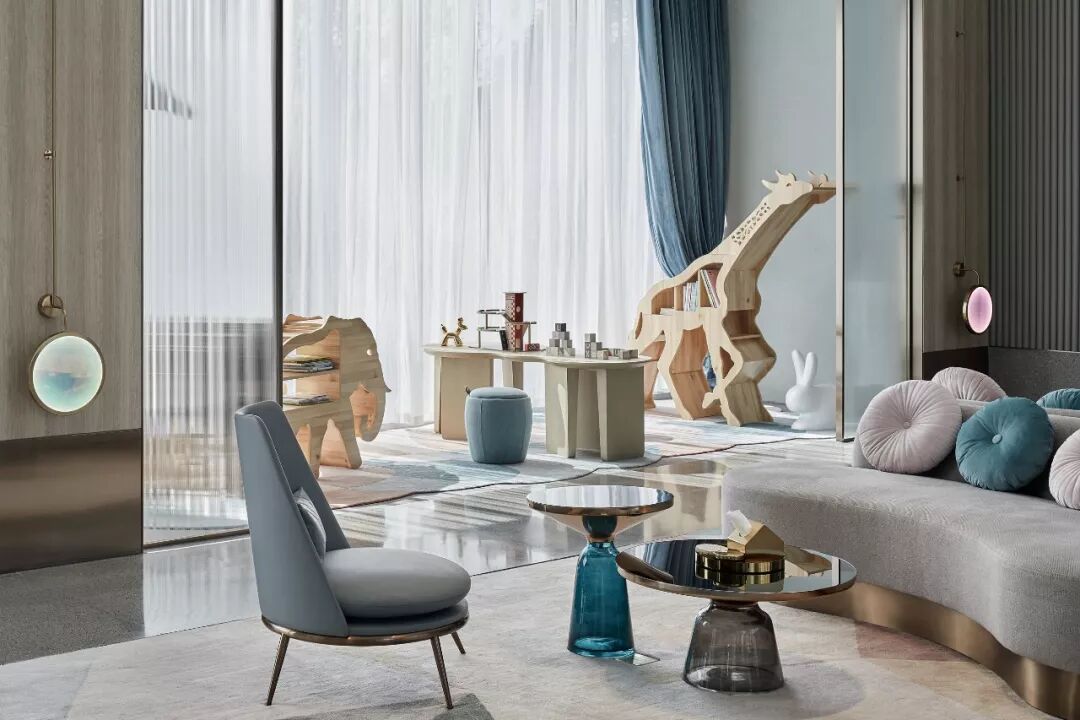 本案在星体与星空绚烂的色彩里提取设计灵感,用后现代的设计语境链接星辰美学,让未来撞上建筑师巴拉干的调色盘,用炫变的色彩打破当下同类场域主流性冷淡风所呈现的的单一,利用光、色、空间及序列感的交错,打造后现代具有未来感的诗意美学场域。
