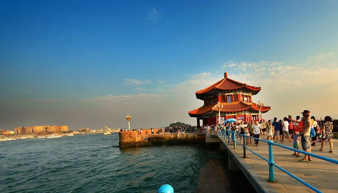 素有“长虹远引”之美誉,是青岛百年标志性建筑漫步于栈桥海滨,可见青岛外形如弯月栈桥似长虹卧波,回澜阁熠熠生辉