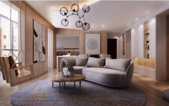 简约明快的色彩,让人进入室内便有一种归属感。室内的秋千设计,让孩子无时无刻不自在放松,欢声笑语,便是家的全部力量。