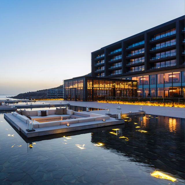 瑜上·山间汤池度假酒店正是出自叁瑞手笔,白居易有诗云:忽闻海上有仙山,山在虚无缥缈间,以此来形容这所精品轻奢汤池度假酒店,最为恰当不过,耸立在崂山之中,望风而去,每一个窗口都是一幅画。