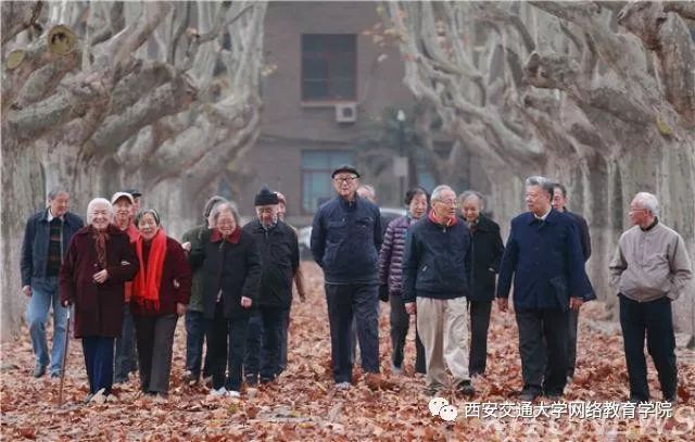 经历20世纪50年代交大西迁的部分师生行走在西安交大校园内