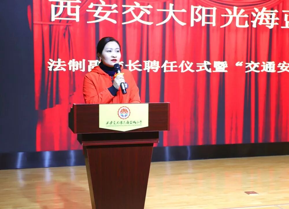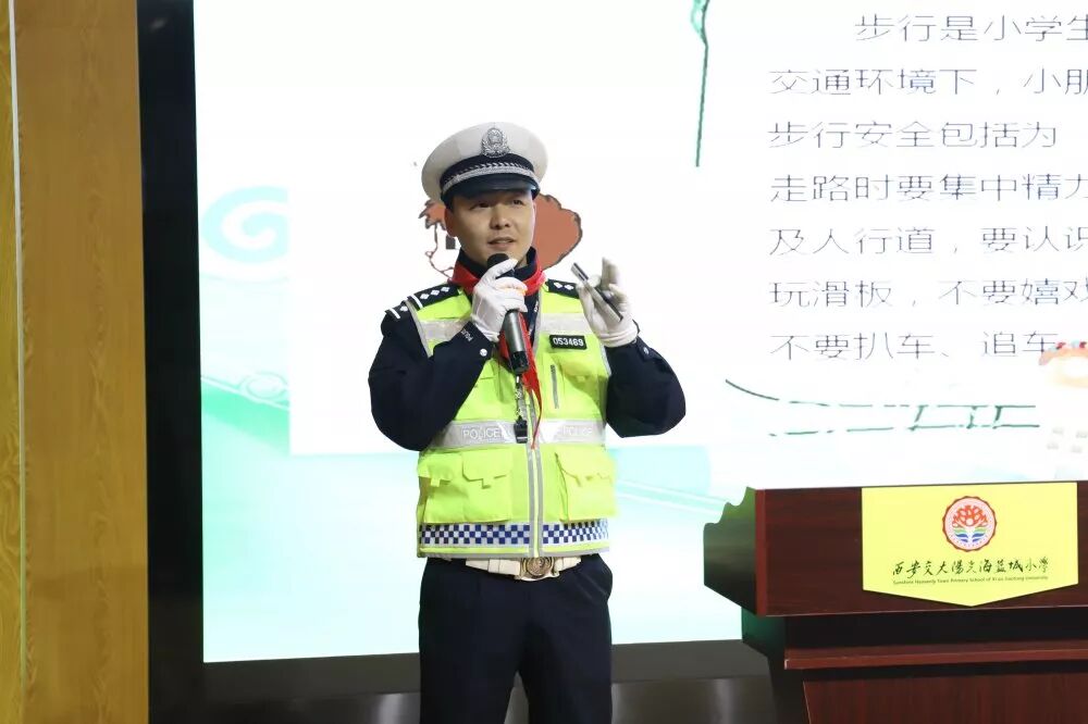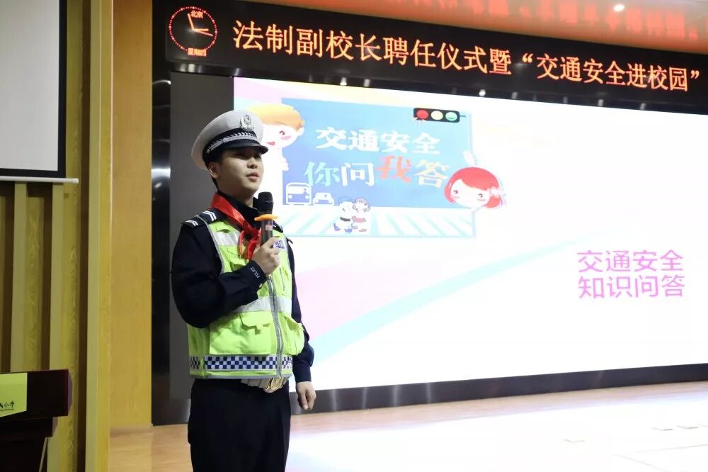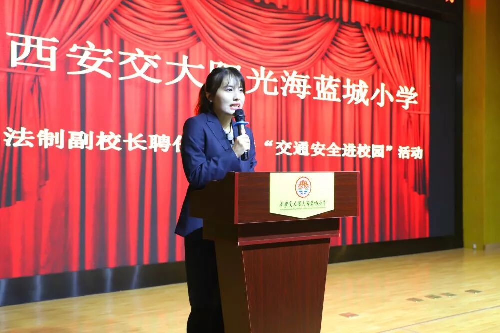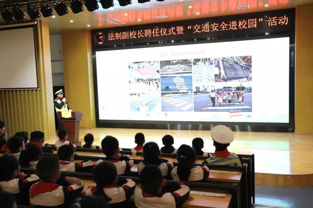 为切实提高我校师生的法制意识和交通安全意识,提高自我防范能力,建立警校共建模式,构建学校、家庭、社会三位一体安全网络,10月24日下午,西安交大阳光海蓝城小学举行了法制副校长聘任仪式暨“交通安全进校园”主题教育活动。