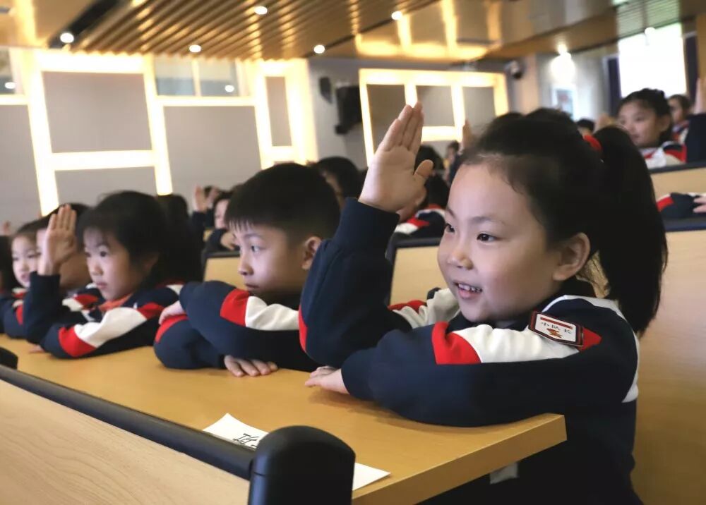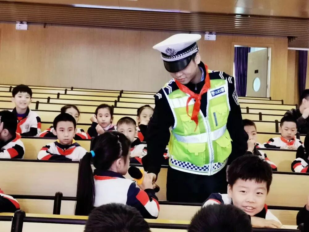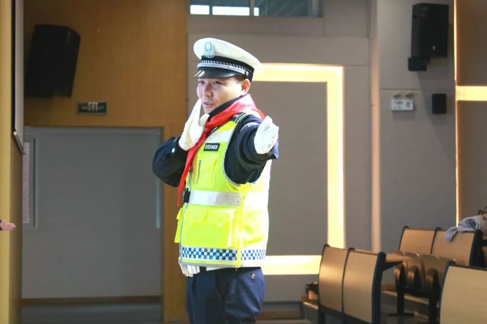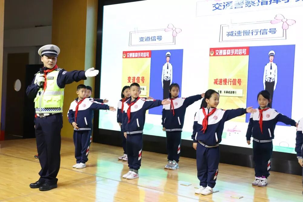 教育活动中,特意安排了“小小交警员”环节。高警官带领孩子们学习立即停车、直行、靠边停车三种最常见的交警指挥手势。学生代表一个个在台上学的有模有样,台下的小观众也跃跃欲试,一招一式学得很是认真。接下来的问答环节,同学们争先恐后举手发言,现场气氛活跃。
