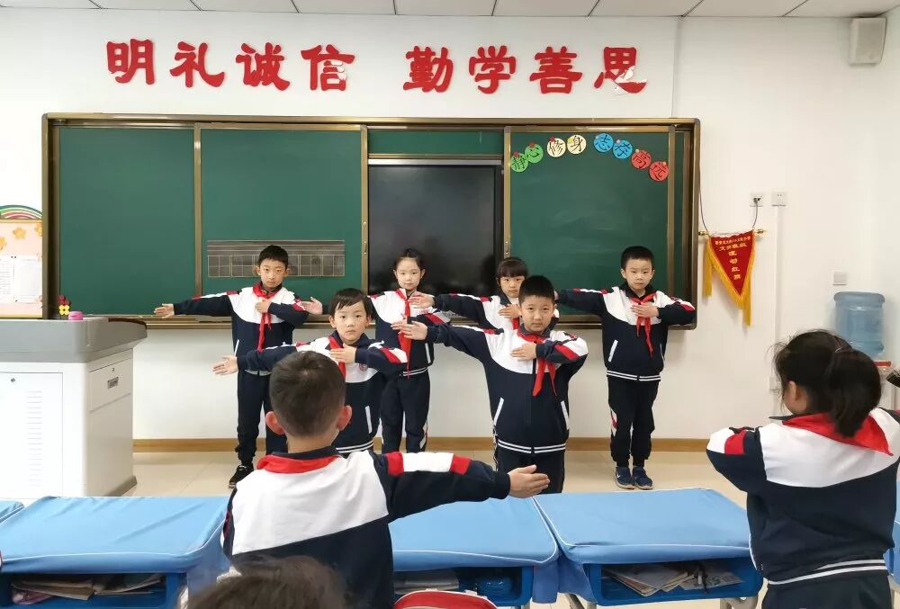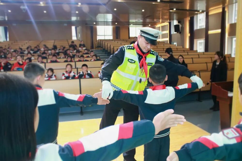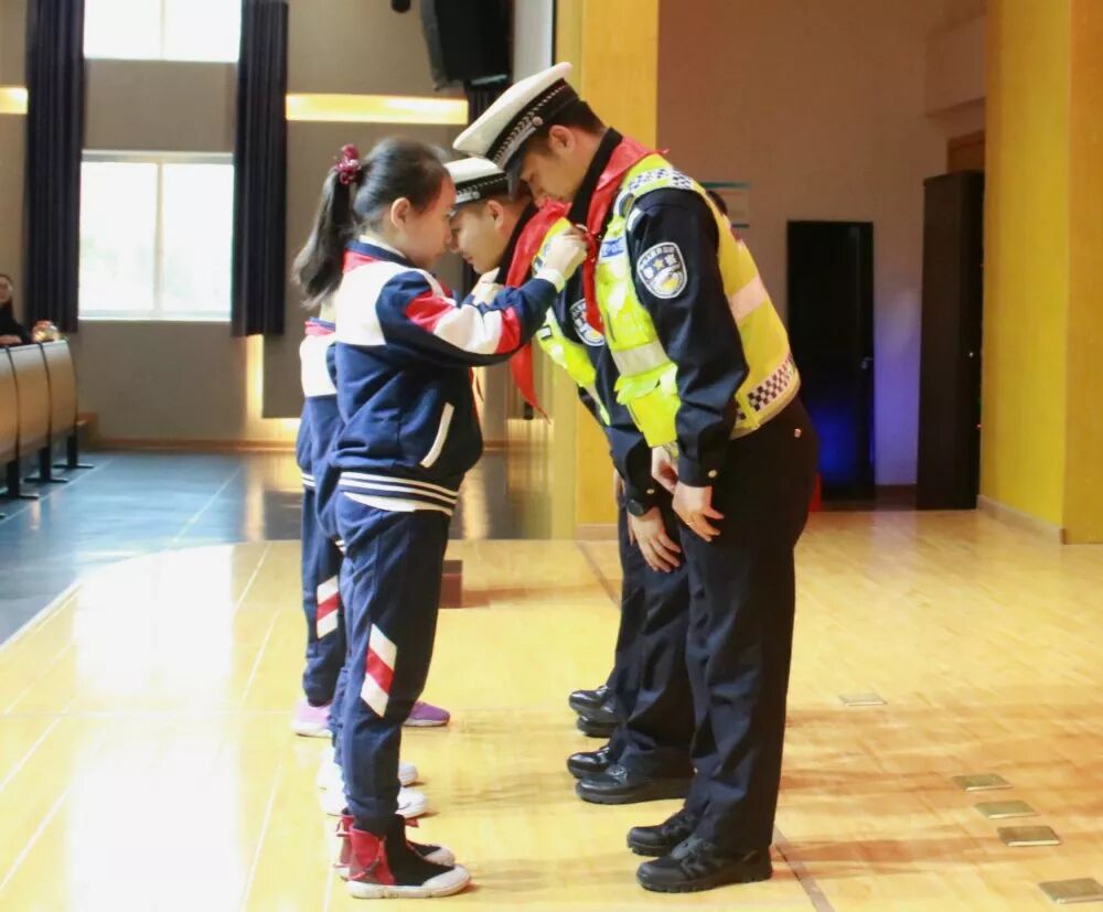 本次活动特别邀请辛家庙派出所马哲副所长和辛家庙交警中队高煜皓警官等嘉宾参加。在师生们热烈的掌声中,优秀少先队员代表为嘉宾们献红领巾。