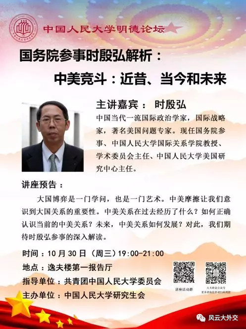 旁听 | 时殷弘:中美竞斗:近昔、当今和未来(中国人民大学,10月30日)