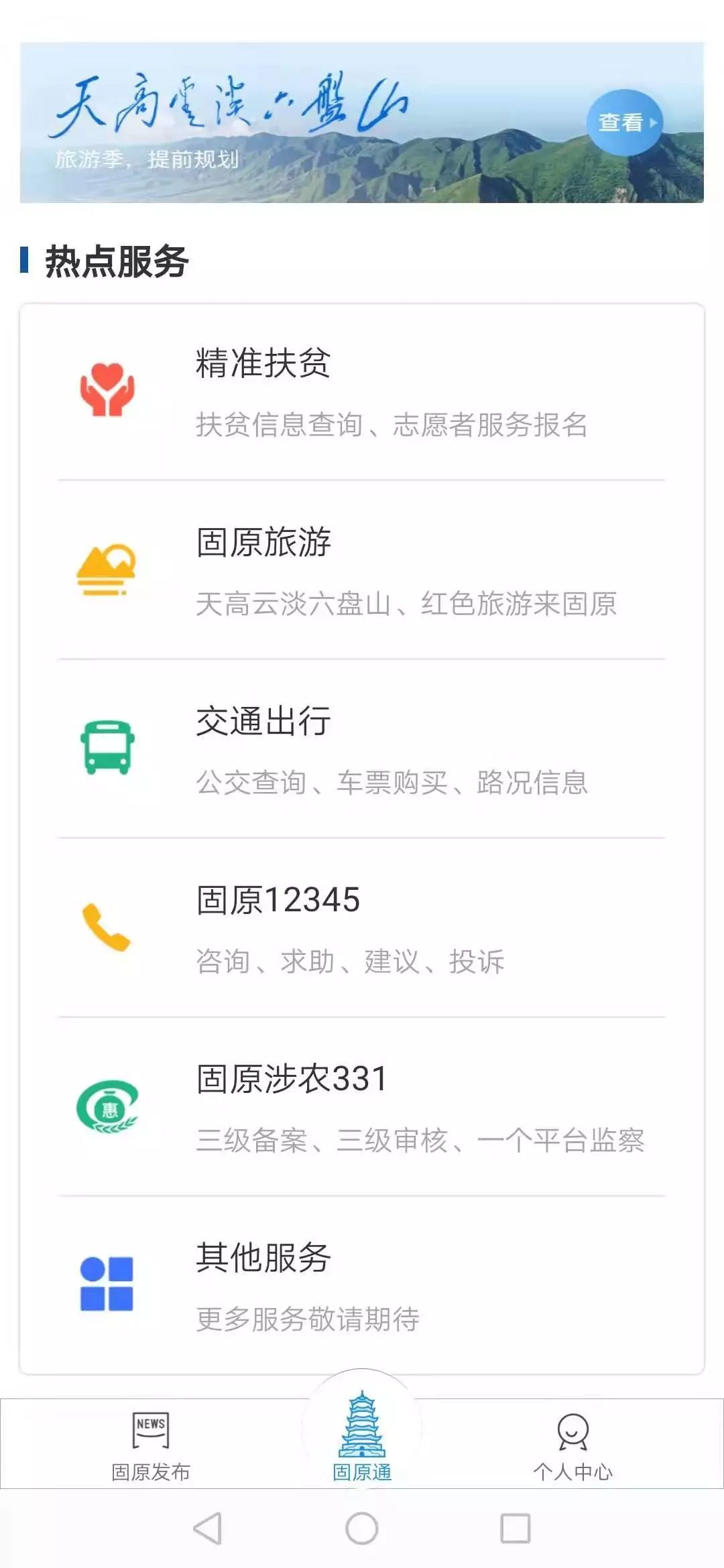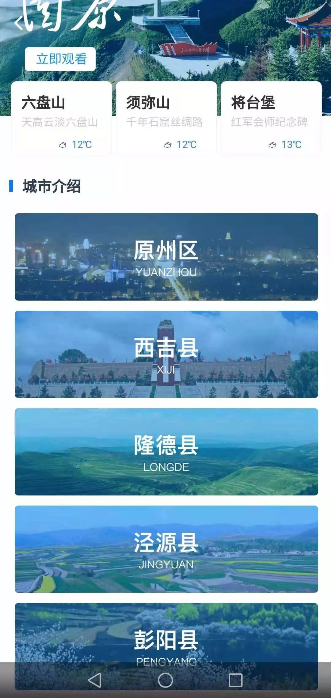 做为固原特色之一,固原旅游是必不可少的功能,观看各类固原旅游宣传片,查看固原重点景区,如天气情况、在线购买门票,预定交通与住宿等。同时还建设了城市介绍,热门旅游路线,道路救援等功能。