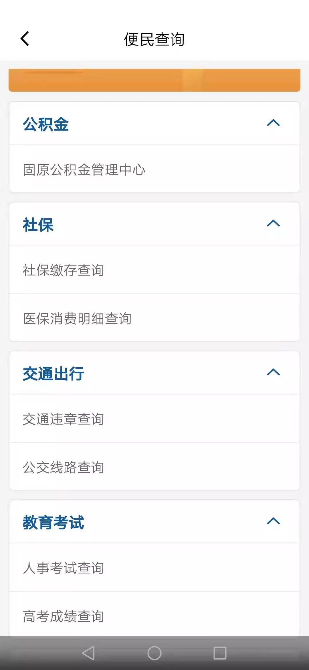 用户可以进行多种个人数据查询服务,如公积金、社保、医保、交通违法查询功能。使用便民查询功能需要先进行实名认证,用户仅可以查询自己的各项信息。实名认证后,只需要点击一键查询,系统将会开始查询各项数据。现阶段“固原通”支持公积金余额与缴存查询、医保余额与消费明细查询、社保缴纳情况查询,还可以通过查询页下方按钮,直通各部门电话服务。