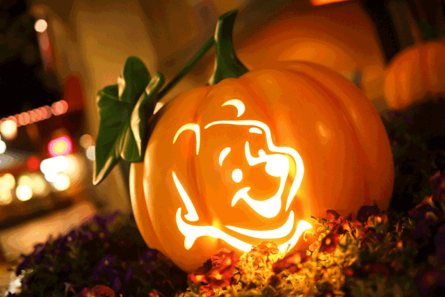 据说,到了晚上,南瓜灯一闪一闪会更漂亮