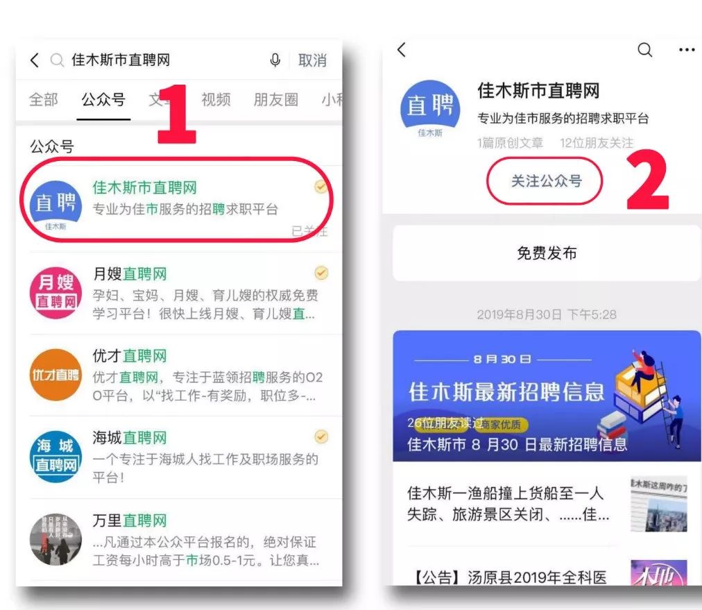 首先进入微信搜索"佳木斯市直聘网"接下来按步骤操作吧▼