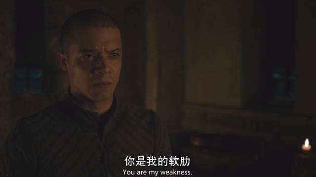 第七季里,灰虫子要出门打仗了,在出发前去和他喜欢的和弥桑黛告别,一句“你是我的软肋”道出了自己的心声!!这句话虽然有点俗,但得结合灰虫子的人设来看。他是个“无垢者”,“无垢者”从小就被“主人”养起来,不允许他们有情感有恐惧,如果你怕狗,那你就去跟狗一起睡,如果你怕水,那就把你扔进海里,生死随缘。他虽然不是最强壮的,但一直都没有任何弱点,直到遇见弥桑黛。所以从他嘴里说出这句话就显得格外甜!