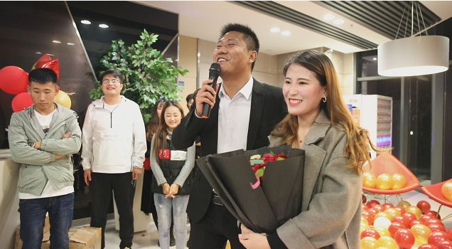 岳一生在宏图创展工作已有七年的时间了,求婚这件事一直是岳一生的一个愿望“我想给她一个惊喜”,说者无意,听者有心,这事情就被大家记在了心里。通过大家的紧密配合,终于在24日晚布置好场景,安排好人员。岳一生的未婚妻是个单纯善良的90后,她对岳一生评价很高,非常支持他的工作,还跟我们是非常好的朋友。