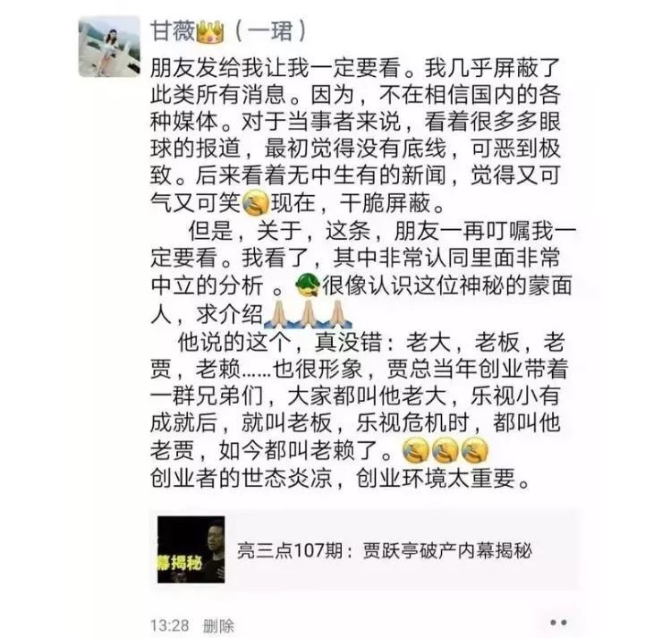 (贾跃亭妻子甘薇社交媒体感叹老大、老板、老贾、老赖的变迁)